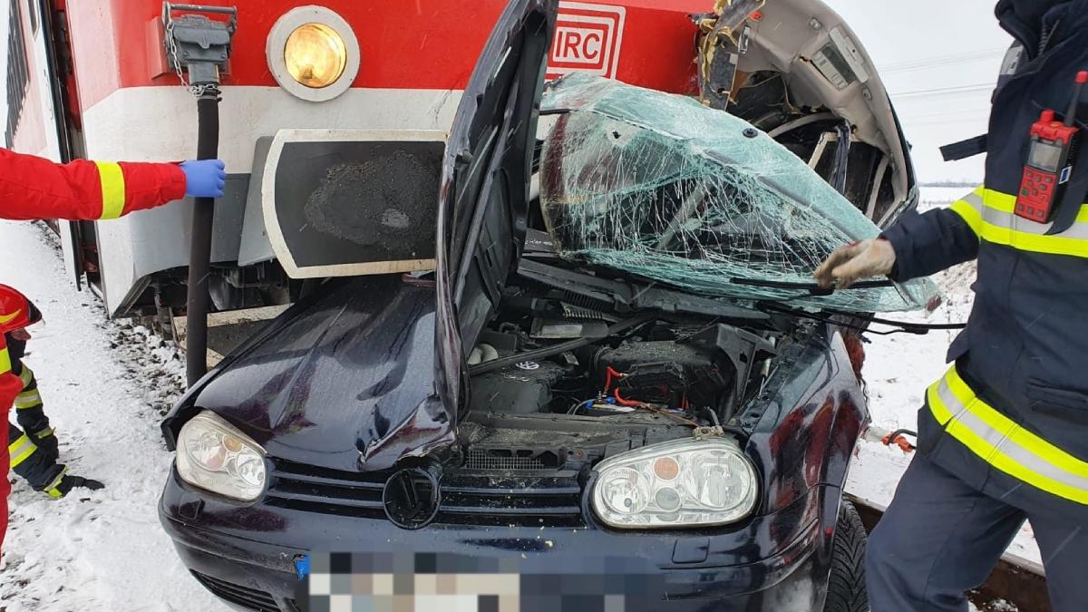 O mașină a fost izbită de un tren, pe raza localității arădene Nabad.