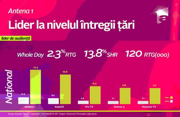 - Antenele sunt lider în Whole Day atât în rândul telespectatorilor din întreg mediul urban, cât și pe Național.