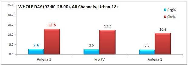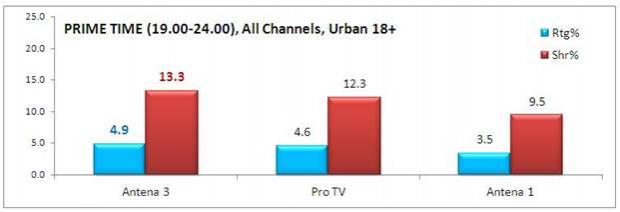 Evenimentele au ţinut telespectatorii în faţa ecranelor TV şi seara, când publicul a ales tot Antena 3 pentru a urmări concluziile zilei, datele de audienţă indicând pentru programele difuzate în prime time o medie de 4.9 puncte de rating şi 13.3% market share. Astfel, Antena 3 se distanţează încă o dată nu numai ca cea mai importantă televiziune informativă, dar se impune şi ca prima opţiune TV de pe piaţă.