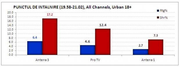 Performanţa este repetată de interviul realizat de Radu Tudor cu premierul Victor Ponta în a doua oră a emisiunii “Punctul de întâlnire”, care a atins o medie de 6.4% rating şi 17.2% cotă de piaţă, şi s-a detaşat de toate celelalte televiziuni din România.