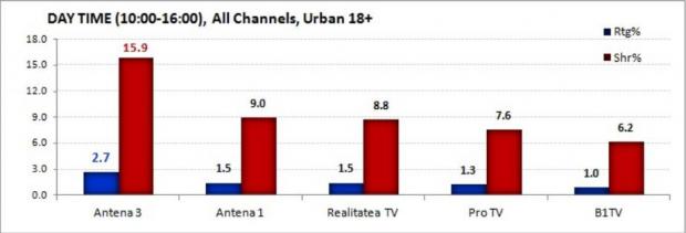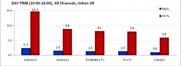 Televiziunea de nişă a fost lider de audienţă şi pe targetul "all urban" cu o medie de 14.7% cotă de piaţă,