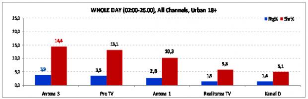 Conform Kantar Media, publicul telespectator a ales sa urmareasca aceste evenimente la Antena3. Astfel, postul de nisa a fost cel mai urmărita televiziune din România la nivelul intregii zile, pe targetul 18+ urban. Antena 3 a înregistrat o medie de 14,4% cotă de piaţă, ocupând locul 1 în topul tuturor televiziunilor din România şi detaşându-se considerabil faţă de principalul său competitor.