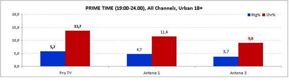 Creşteri semnificative s-au produs şi în prime time, când ratingul a urcat cu 54%, de la o medie de 2,4% la 3,7%, iar share-ul cu 32%, de la 6,8% la 9%.