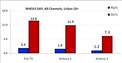 Cu o cotă de piaţă de 7.6%, Antena 3 a ocupat ieri locul 3 în topul tuturor posturilor tv, fiind devansată doar de cele mai puternice canale generaliste. În acelaşi timp, concurentul direct s-a situat abia pe poziţia a opta cu doar 5.9% share.