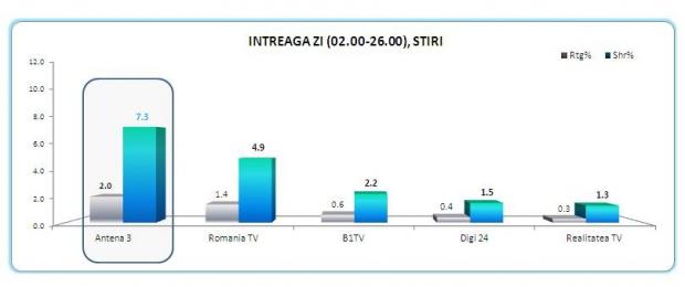 Pe parcursul intregii luni, Antena 3 a avut peste 2.700.000 de telespectatori unici.