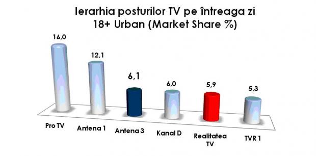 Cu o medie 118.000 telespectatori din mediul urban şi o cotă de piaţă de 6.1, postul de nişă parte a Intact Media Grup şi-a depăşit principalul concurent, Realitatea TV, care se claseaza abia pe poziţia 5.