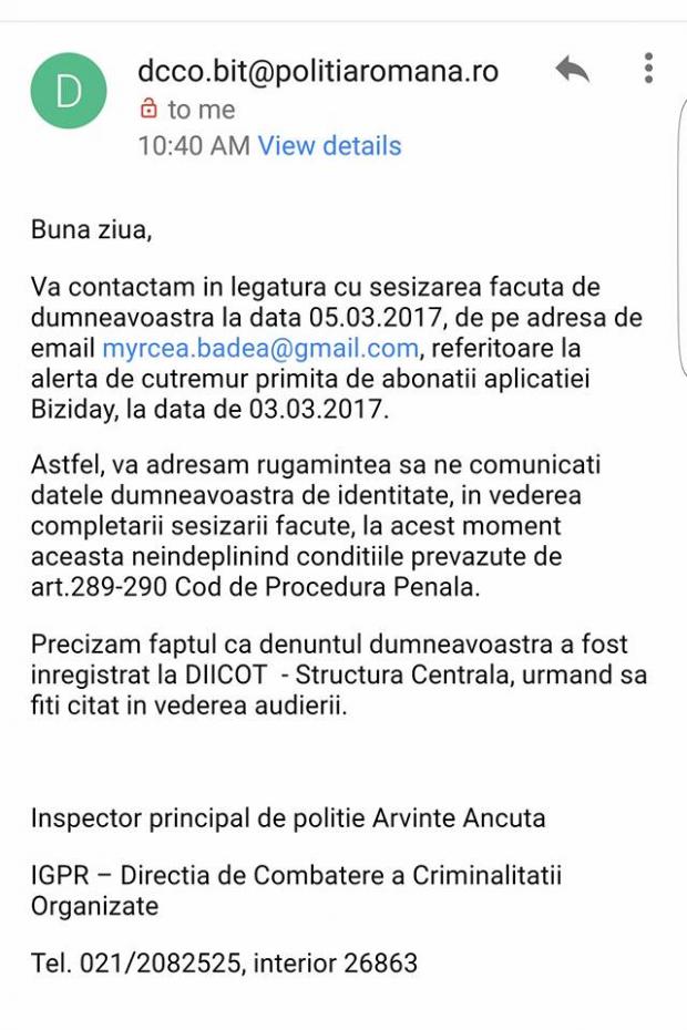 Concret, instituția îl înștiințează pe prezentatorul emisiunii „În gura presei” că, înainte să fie audiat la DIICOT, trebuie să își precizeze codul numeric personal, conform articolelor 289-290 din Codul de Procedură Penală (deși, la vremea lui, Ghiță nu fusese confruntat cu această cerință din partea PICCJ).