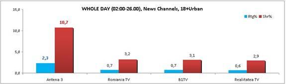 Conform Kantar Media, postul de nişă a înregistrat la nivelul intregii zile o medie de 10,7% cotă de piaţă, pe targetul 18+ urban, situandu-se astfel pe primul loc in clasamentul televiziunilor informative, la o distanta considerabila fata de urmatorii clasati.