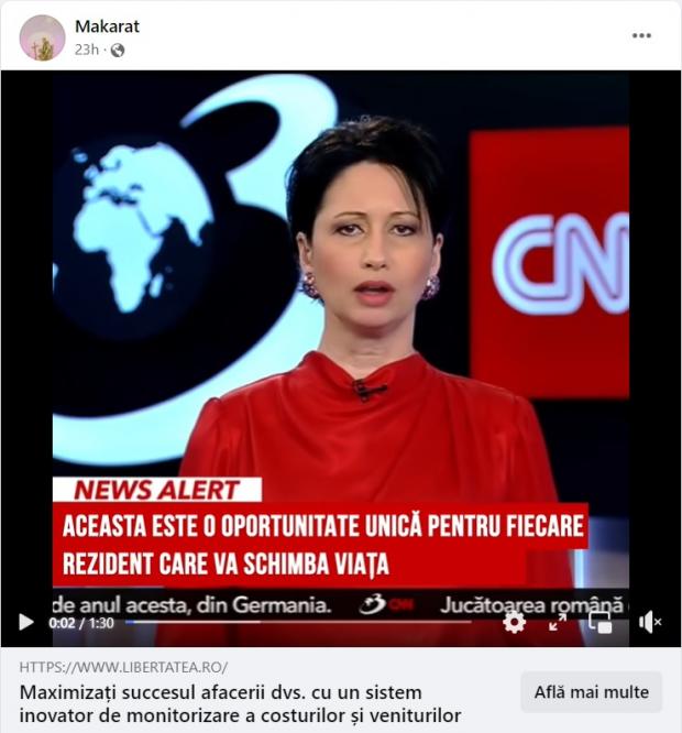 Clipul video deepfake prezintă imaginile furate de la Antena 3 CNN, dar şi un link fals prezentat sub numele publicaţiei Libertatea, pentru a-i înşela pe oameni să dea click pentru "a-şi schimba viaţa".