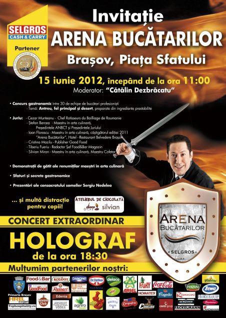 Selgros pregăteşte braşovenilor şi turiştilor aflaţi la Braşov un eveniment foarte gustos pentru vineri, 15 iunie 2012, în Piaţa Sfatului din Brașov. „Arena Bucătarilor”, o competiţie de tradiţie organizată de Selgros, dedicată profesioniştilor din Gastronomie şi aflată acum la a treia ediţie, va alinia la startul concursului 30 de echipe de bucătari profesionişti de la cele mai bune restaurante din România.