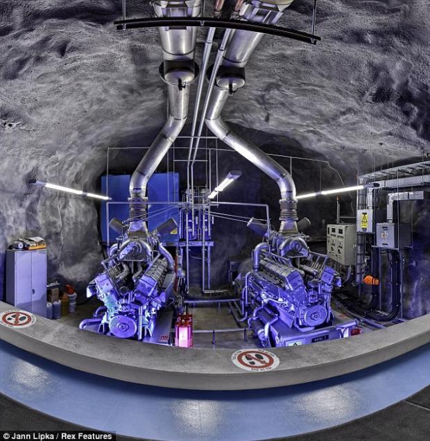 Dispune de o sală de conferinţe, coridoare suspendate din sticlă, mobilă specială şi chiar motoare de la submarine germane, folosite ca generatoare în caz de urgenţă.