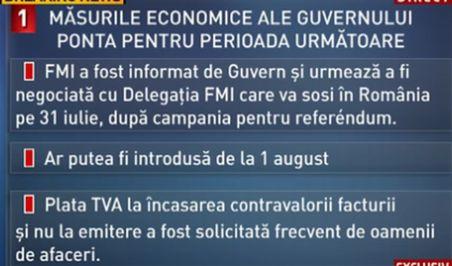 - Decizia cu TVA la încasarea facturilor a fost discutată în prealabil cu reprezentanţii celor trei instituţii, ei vor veni pe data de 30 iulie şi vor sta până pe 13-14 august.