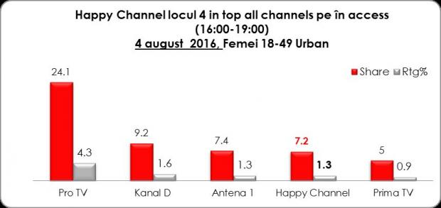 Şi în Access, Happy poate fi regăsită pe locul al patrulea în top All Channels.