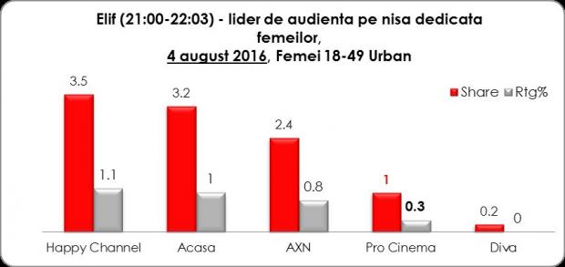 Nouă achiziţie a postului, telenovela fenomen Elif, a fost, de asemenea, lider de audienţă pe intervalul de difuzare.