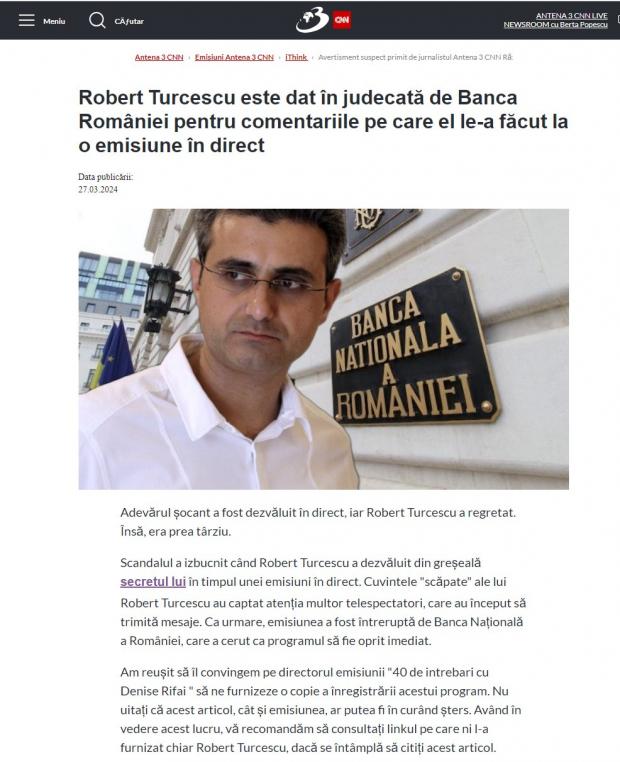 Pe site-ul Antena 3 CNN nu există un asemenea articol. Nici Robert Turcescu nu a acordat vreodată pretinsul interviu de mai jos.