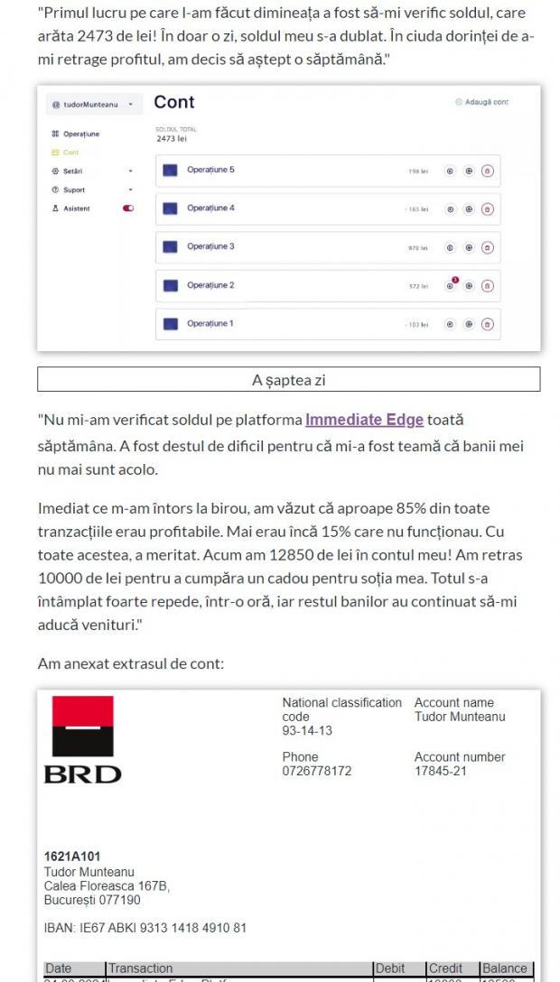 Materialul este un fals de la un capăt la altul, cu scopul de a convinge persoanele credule să se înscrie pe o platformă care le promite câştiguri imense şi facile.
