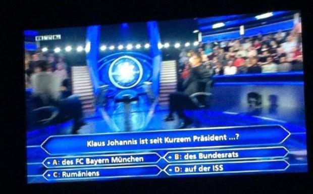 Concurentul a trebuit să răspundă la întrebarea "Cine este Klaus Iohannis?". Variantele au fost: a)preşedintele clubului de fotbal Bayern Munchen; b)preşedintele Bundesratului; c)preşedintele României; d)preşedintele Staţiei Spaţiale Internaţionale.
