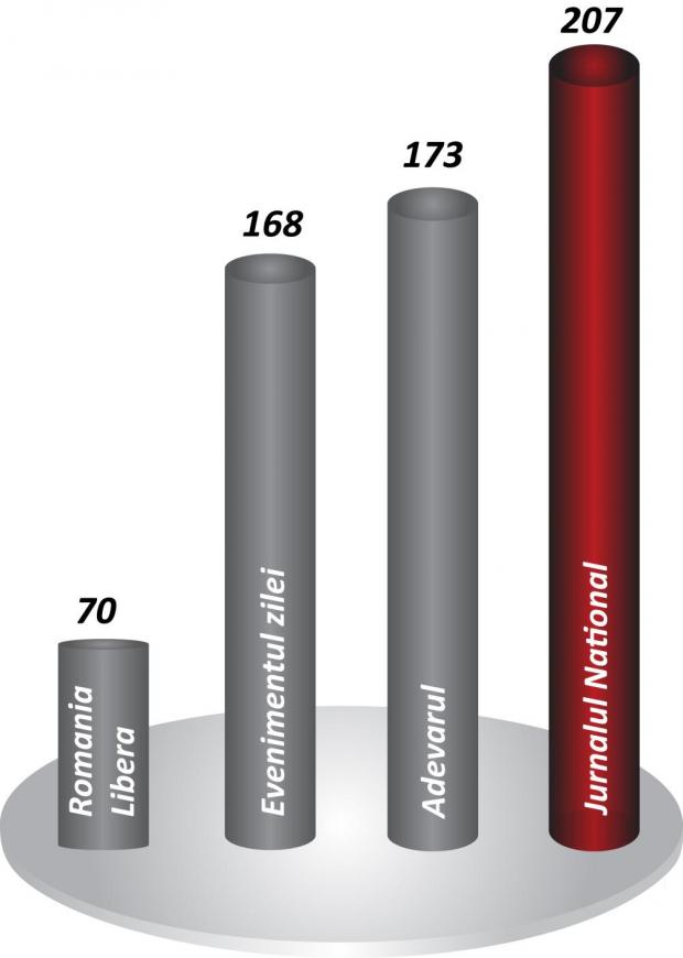 Acest top reflectă diferenţele de atitudine, de calitate şi de conţinut pe care Jurnalul Naţional le propune în fiecare zi cititorilor săi. Cititorii Jurnalului au validat prin opţiunile lor de lectură demersurile jurnalistice şi modul în care ziarul lor preferat reflectă realitatea românească, de aceea, ei reprezintă cea mai importantă voce pe care Jurnalul Naţional o ascultă de fiecare dată.