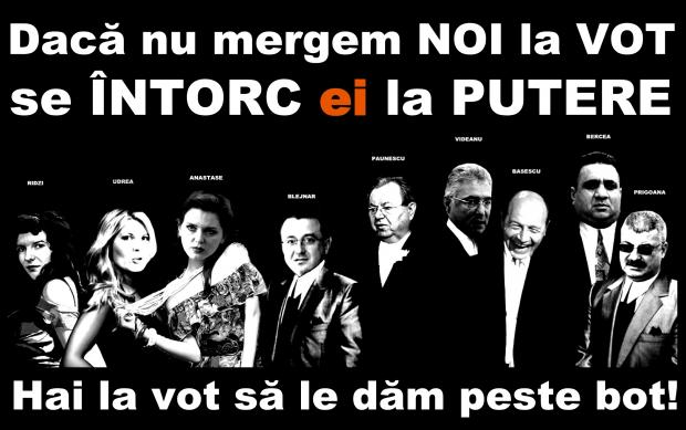 Este ziua în care românii pot alege să îl demită pe președintele Traian Băsescu sau, cum sugerează o poză primită de la un utilizator Antena3.ro pe adresa [email protected] , să le dea o palmă peste bot celor din guvernarea anterioară. ”Hai la vot să le dăm peste bot”, este mesajul utilizatorului Antena3.ro.