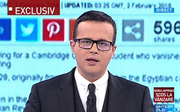 Mai exact, Cezar Matei a ”împrumutat” fotografia lui Giulio Regeni, studentul italian găsit mort în Egipt. Corpul tânărului, care era student la Universitatea din Cambridge, era plin de răni făcute prin înjunghiere.