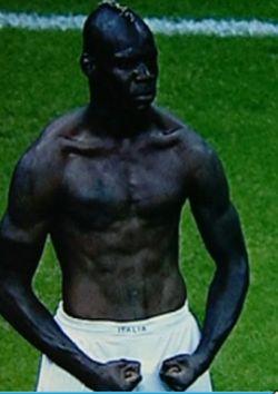 Mircea Badea, realizatorul emisiunii "În gura presei" şi-a făcut o poză în care imită poziţia fotbalistul italian Mario Balotelli după al doilea gol pe care l-a dat în semifinala împotriva Germaniei, de la EURO 2012.