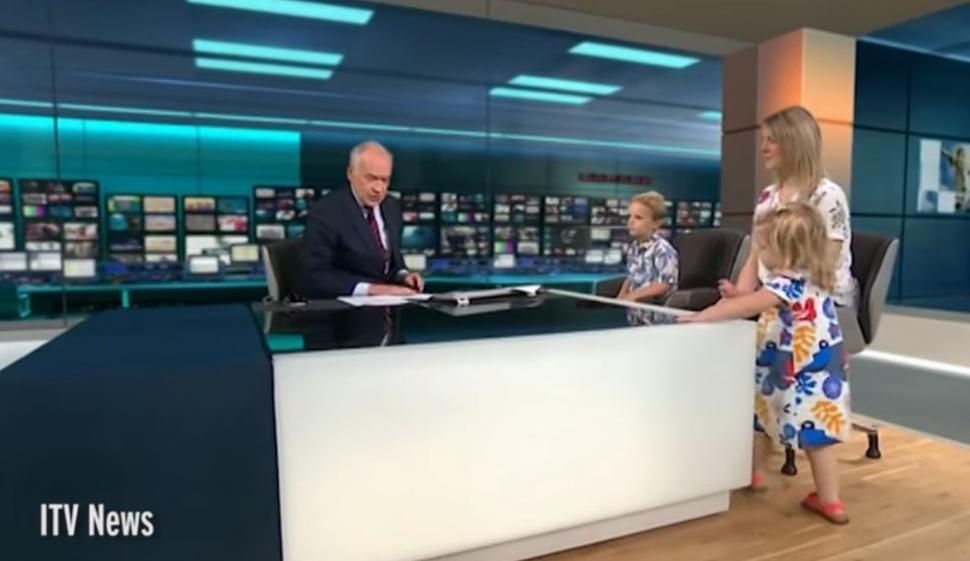 „Sunt acum alături de mama Lucy Wrokna și copii săi, George și, chiar în fața mea, Iris, care va face tot ce dorește ea să facă în următoarele două minute”, a spus moderatorul.