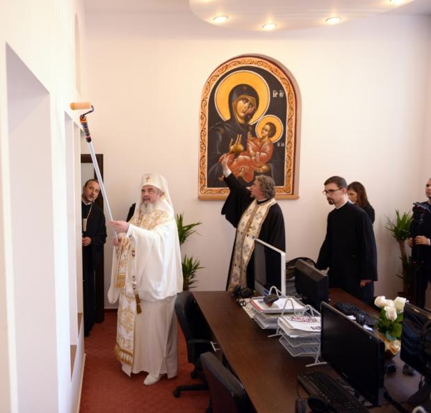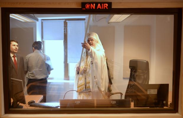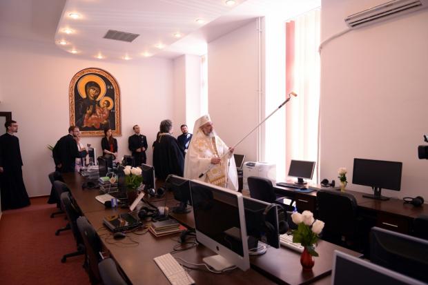 Patriarhul Daniel a sfinţit şi inaugurat noile studiouri ale Radioului şi Televiziunii Trinitas, mutate în Centrul Social-cultural Iustin Patriarhul, cu ajutorul unui trafalet, după cum arată fotografiile publicate pe basilica.ro, site-ul agenţiei de presă a Patriarhiei Române.