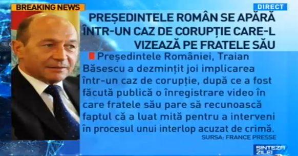 Antena 3 a prezentat, în ediţia de miercuri seară a emisiunii "Sinteza zilei", imagini în care fratele preşedintelui, Mircea Băsescu, apare discutând cu fiul lui Bercea Mondial despre plata unor sume importante de bani în scopul eliberării interlopului.