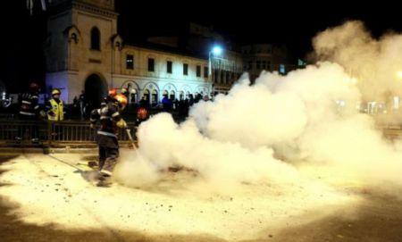 Conform postului Voice of Russia, protestatarii din Bucureşti au aruncat cu pietre şi cocteiluri Molotov spre forţele de ordine.
