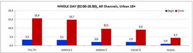 Pe parcursul întregii zile, postul nostru de ştiri a înregistrat o medie de 2% rating şi 9,5% share, ocupând astfel locul al treilea în clasamentul general al televiziunilor din România şi prima poziţie la ştiri.