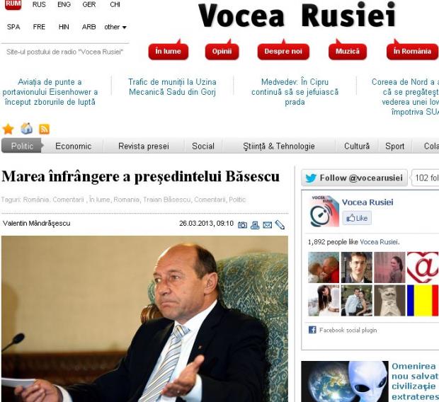 Jurnaliştii ruşi susţin că şeful statului a demonstrat încă o dată că este incapabil să respecte Constituţia. Presa scrie că de la referendumul din vară, Traian Băsescu nu mai este preşedintele tuturor românilor şi nici măcar al tuturor simpatizanţilor PDL.