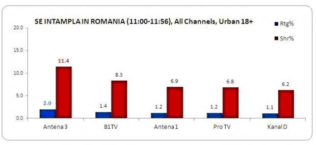 Emisiunea realiata de Maria Coman a depasit toate programele din intervalul orar aferent, inregistrand o medie de 11.4% cota de piata si situandu-se in fata tuturor celorlalte televiziuni din Romania, inclusiv B1 tv, unde invitat era Presedintele Traian Basescu.