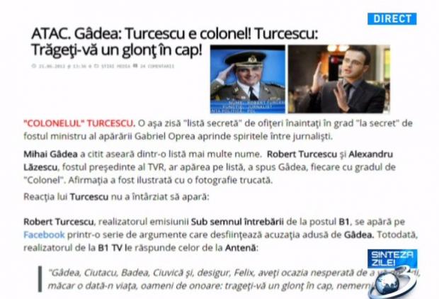 Mihai Gâdea amintește că, în 2012, redacția Antena 3 a obținut o listă cu mai multe nume de ofițeri numiți la "strict secret" de Oprea. Lista conţinea nume de politicieni, foşti miniştri, primari, preşedinţi, dar și jurnalişti precum Robert Turcescu.