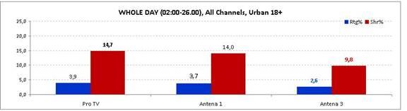 La nivelul întregii zile, Antena 3 şi-a adjudecat încă o dată poziţia de lider în topul televiziunilor de ştiri şi locul al treilea în piaţă, cu o medie de 2,6% rating şi 9,8% cotă de piaţă.