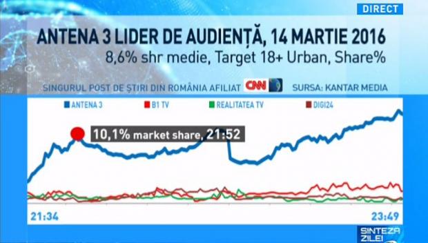 În deschiderea emisiunii de marți seară, Gâdea a prezentat audiențele înregistrate de ”Sinteza zilei”, unde invitat în emisiune a fost Octav Bjoza, preşedintele Asociaţiei Foştilor Deţinuţi Politic din România.