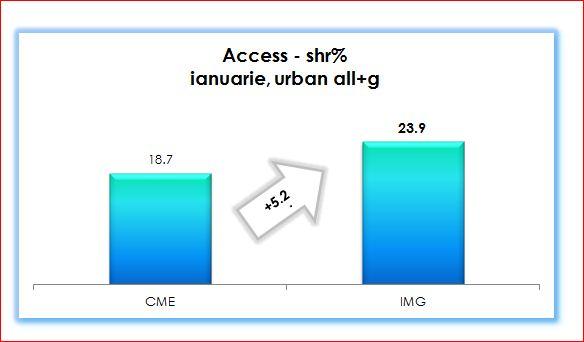 Acces este un alt interval orar în care IMG conduce detaşat în topul audienţelor, având 5,2 puncte avans faţă de media înregistrată de televiziunile CME.