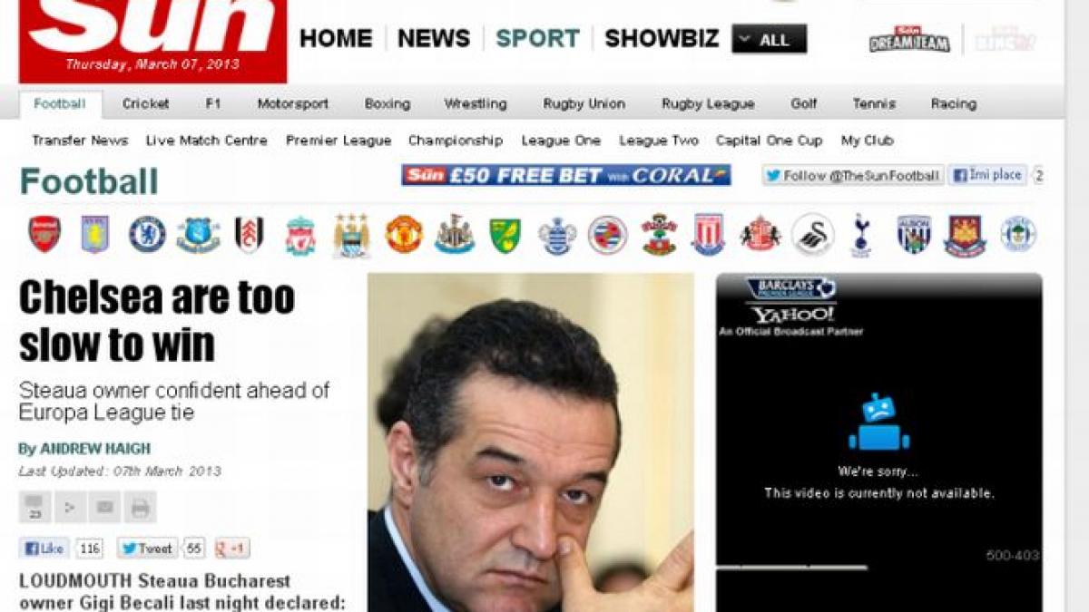 "Chelsea, de o calitate slabă, învinsă în România", a notat şi BBC, în timp ce Sportinglife a menţionat: "Steaua o scufundă pe Chelsea".