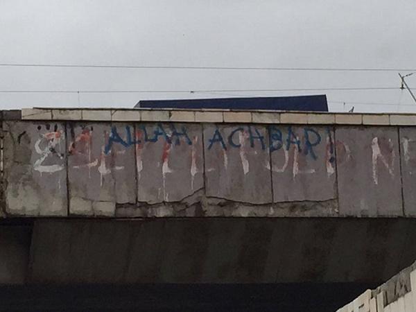 Totuși, ”artistul” se pare că nu s-a documentat înainte de a-și începe ”opera de artă” și în loc să scrie ”Allahu Akbar”, a scris ”Allah Achbar!”.