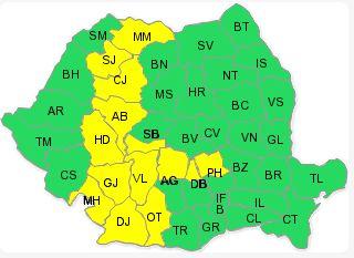 În Oltenia, vestul Transilvaniei şi Maramureş cantităţile de apă vor cumula local peste 25 l/mp, iar în zona Carpaţilor Meridionali se vor depăşi 60...70 l/mp.