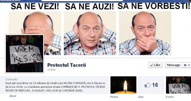 Protestul, intitulat „Protestul tăcerii”, îndeamnă românii care au votat la referendumul din 29 iulie să vină miercuri în fața sediului de campanie al lui Traian Băsescu de la ora 18:00 cu o lumânare și să protesteze pașnic fată de declarațile și acțiunile lui Traian Băsescu din ultimele săptămâni.