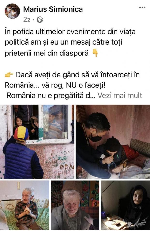 „În pofida ultimelor evenimente din viața politică am și eu un mesaj către toți prietenii mei din diasporă: Dacă aveți de gând să vă întoarceți în România… vă rog, NU o faceți! România nu e pregătită deloc să vă primească.