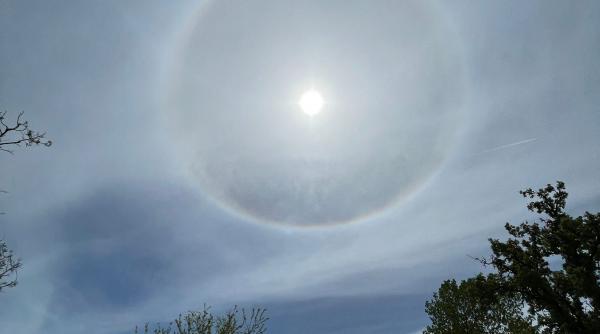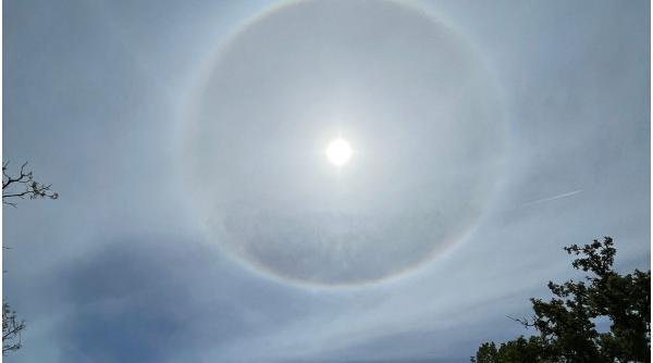 Toţi cei prezenţi la mănăstirea Pantocrator s-au mirat când au văzut apariţia unui inel circular în jurul soarelui, în culorile curcubeului. Pare precum o aură spun oamenii care au mărturisit că este vorba cu siguranţă de o minune dumnezească.