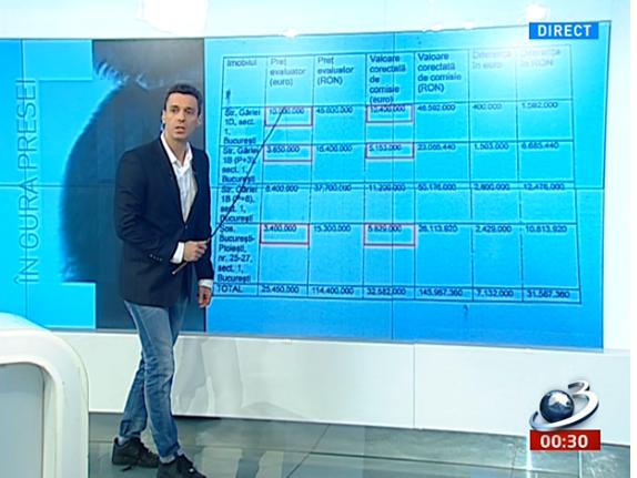 În continuare, realizatorul ''În gura presei'' a explicat că ANAF, în loc să scoată la licitație terenul evaluat de DNA la circa 60.000.000 de euro, vrea să vândă sediul din care emite Antena 3.