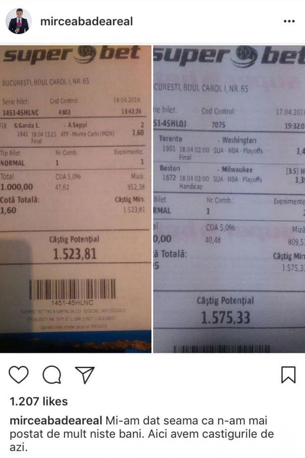 „Mi-am dat seama că n-am mai postat demult niște bani. Aici avem câștigurile de azi”, a scris Mircea Badea, pe Instagram.