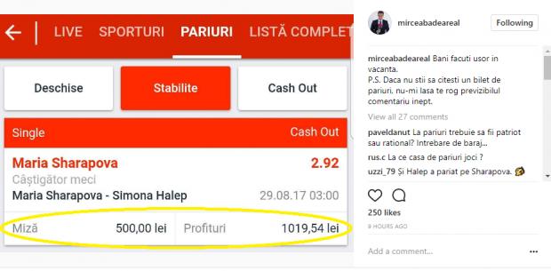 Meciul de tenis dintre Simona Halep și rusoaica Maria Sharapova i-a adus un câştig frumos lui Mircea Badea.