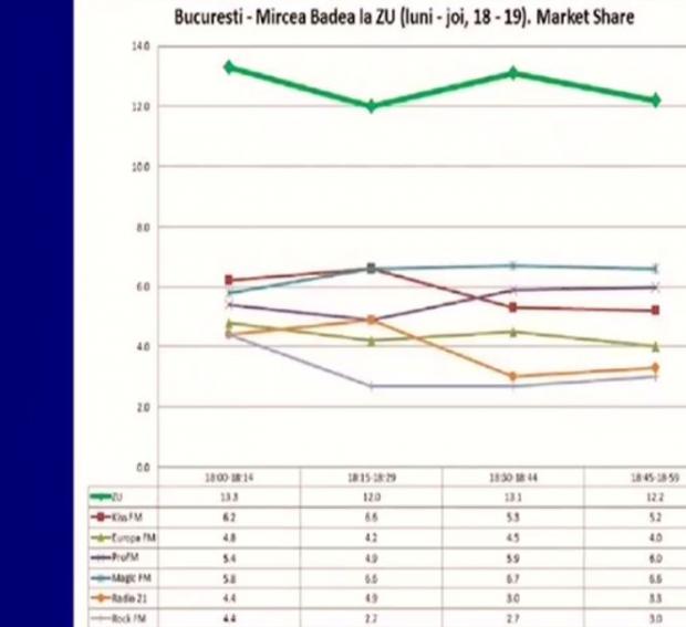 „Au venit audiențele la Radio Zu. E numărul 1 pe București, dar asta am mai vorbit, am arătat. Vreau să mă refer la emisiunea mea de la Radio Zu, o emisiune pe care o fac cu Răzvan Popescu, personaj celebru. Emisiunea e de la 18.00 la 19.00, noul sezon începe de luni(...). Vă spun pe scurt. Locurile 3, 4 și 5 însumate nu fac cât locul 1, adică eu”, a spus Mircea Badea, marți, la Antena .