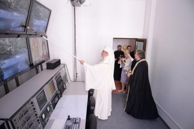 Noile studiouri ale radioului şi televiziunii Trinitas au fost inaugurate şi sfinţite de Patriarhul Daniel, săptămâna trecută, iar din imaginile publicate pe basilica.ro - site-ul agenţiei de presă a Patriarhiei Române - Părintele Daniel pare că sfinţeşte un un trafalat în locul tradiţionalului buchet de busuioc.