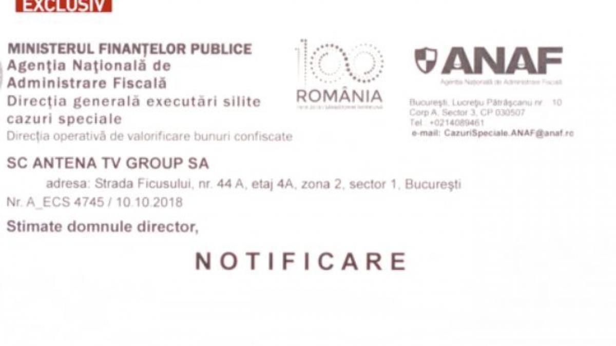 Notificarea ANAF transmite că Antena TV Group poate opta pentru achiziționarea clădirii și terenului din Strada Gârlei, imobil denumit „Grivco Business Center”, în baza dreptului de preemțiune.