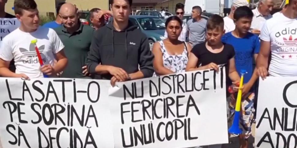În fața Primăriei din Baia de Aramă s-au strâns sute de oameni, care scandează de la ora 19 că o vor pe Sorina înapoi să crească alături de familia care a crescut-o.