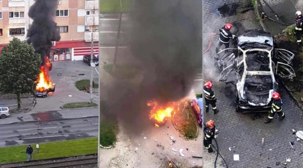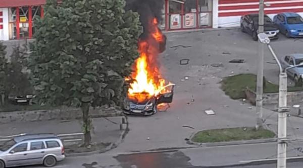 Un Mercedes a explodat în parcarea unui supermarket din Arad. Fostul socru al unui deputat a murit